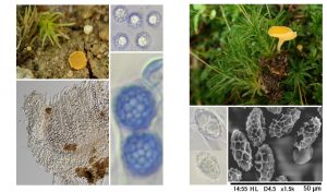 6, 日本蘚苔類学会優秀発表賞を受賞した院生の細野天智さんが調べているコケ植物に寄生すると考えられるチャワンタケの仲間。Neotiella属の一種(細野さん撮影)